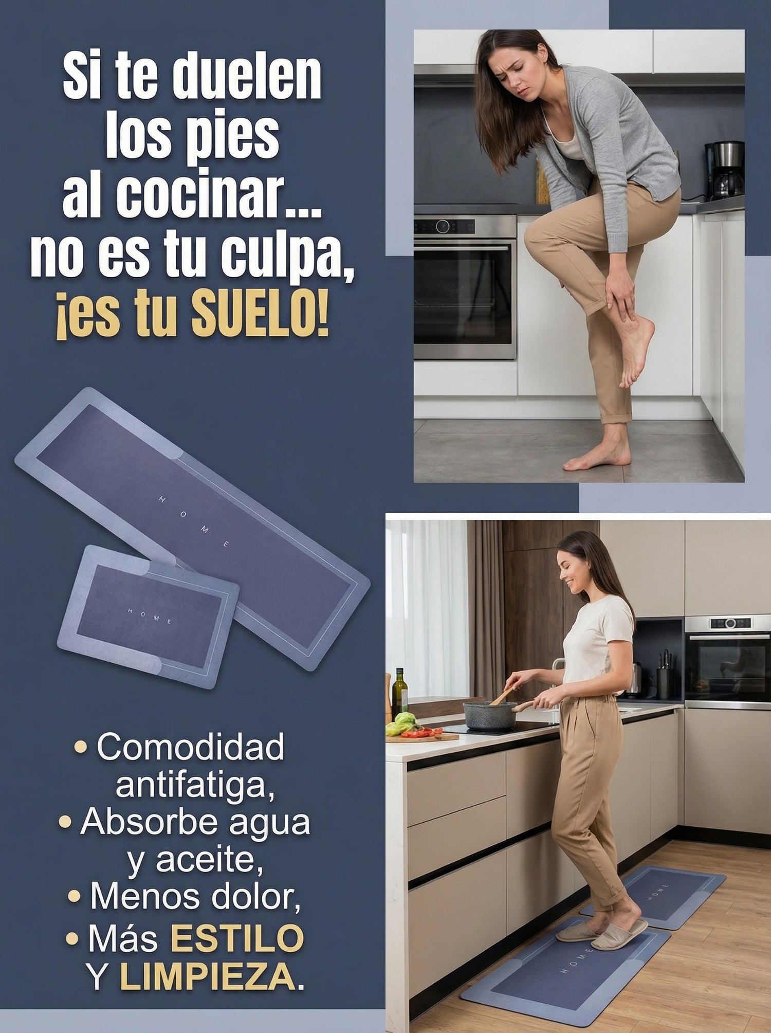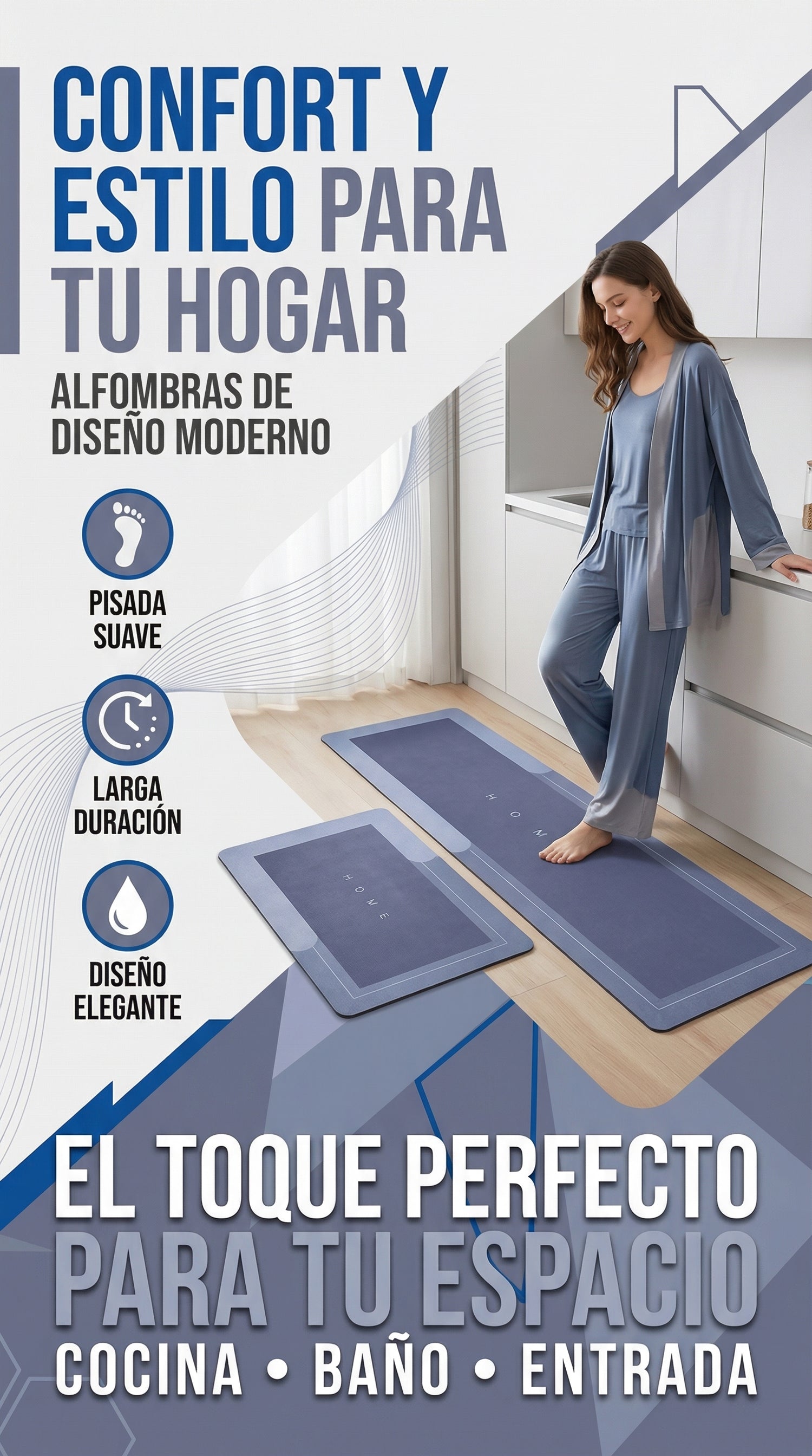 CleanStep™ COMBO DE 2 ALFOMBRAS ANTIDESLIZANTES, SUPER ABSORBENTES PARA COCINA O BAÑO
