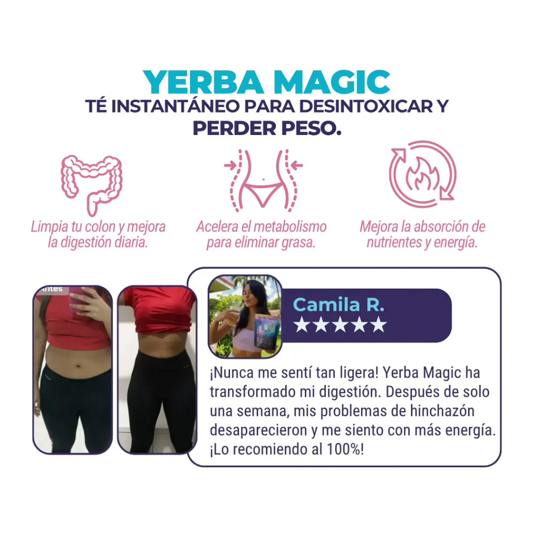 Sí. Yerba Magic combina ingredientes como la yerba mate, fibras naturales y probióticos que favorecen la quema de grasa, mejoran la digestión y controlan el apetito.